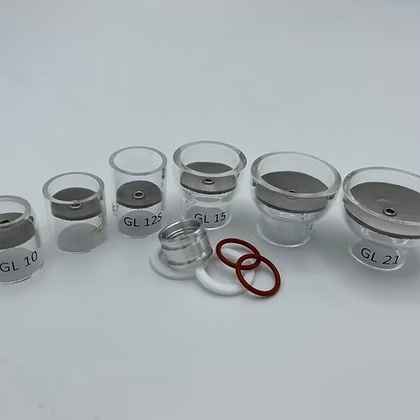 #10 Shorty, #12 Super Shorty, #12 Shorty, #15 Shorty, #18 Shorty and #21 Shorty Series Gas Lens Welding Cups with diffusers (select diffuser size 1/16, 3/32 or 1/8 or 5/32)